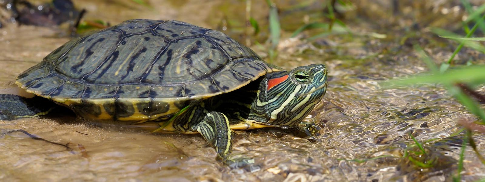 The red-eared slider turtle is listed by the International Union for Conservation of Nature (IUCN) as ‘one of the world’s worst invasive alien species’. It is considered an environmental pest outside its natural range because the species competes with native turtles for food, nesting areas and basking sites.